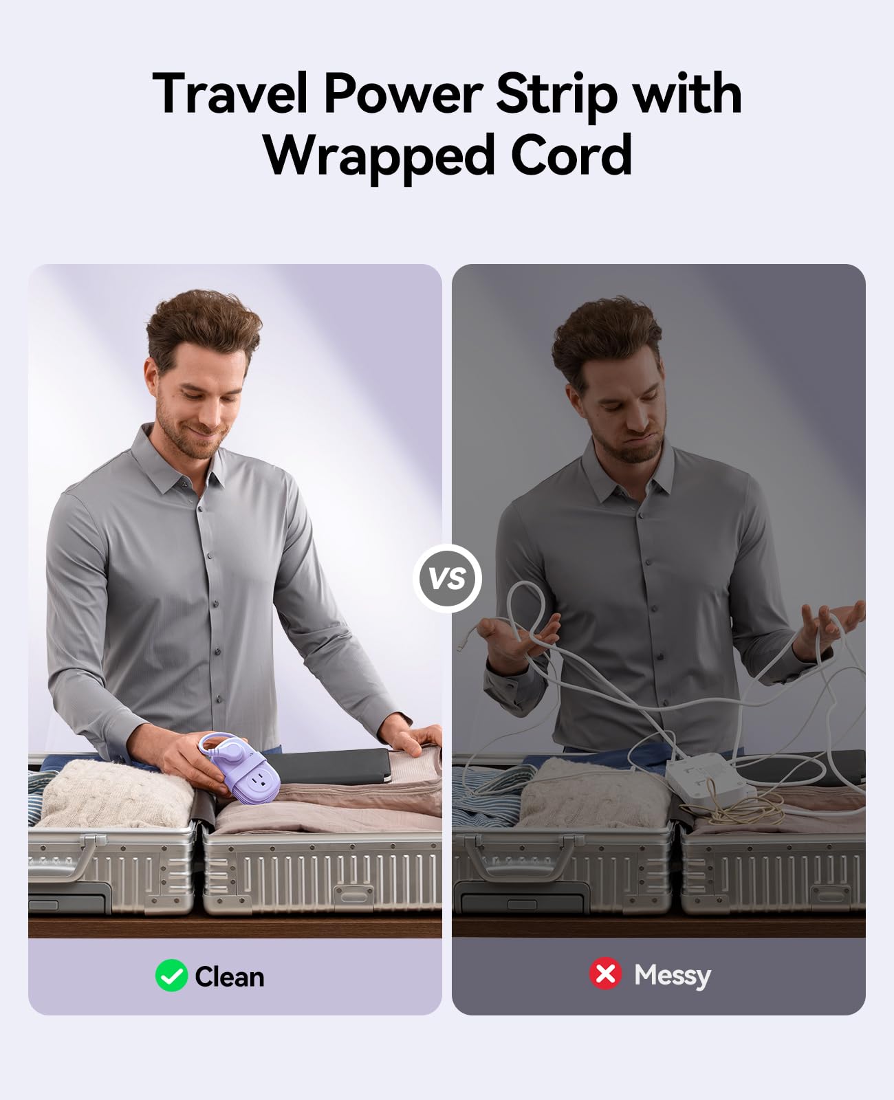 Eliminate tangled wires and maintain an organized space. The clever wrap-around design allows the 4ft cord to be stored neatly and securely around the power strip's body, ensuring a clean workspace and compact storage for travel.