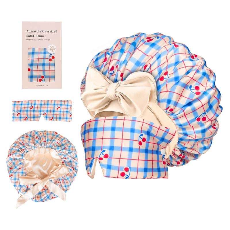 Design Factor: The bonnet and eye mask are connected by a 4-in-1 closure. The eye mask can be detached to suit different occasions.