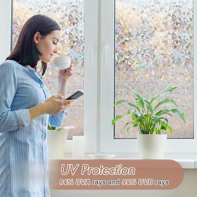 This privacy film blocks 84% of UVA and 99% of UVB rays, safeguarding your belongings from sun damage. It filters out glare, ensuring soft natural light indoors. Ideal for furniture, curtains, and artwork, it prevents fading and damage from prolonged sunlight exposure. Enjoy a healthier environment with this protective film.